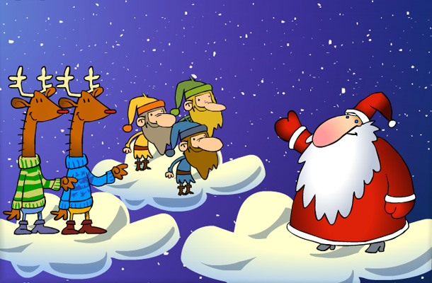 Unser kaiser-grafix Weihnachtsmann möchte passend zu Weihnachten das Weihnachtslied anstimmen. Helfen wollen ein fröhlicher Chor aus Rentieren und Weihnachtswichteln, aber es will nicht so richtig klingen ...